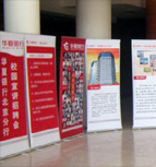 門型展架:門型展架成為近幾年來促銷商家深受信睞的產(chǎn)品,門型框架選材鐵制白噴,造型精美,攜帶方便,輕巧批量定制,材質(zhì)有鐵底座及工程注塑底座。 快速展架:快速展架是近幾年來流行于各大商業(yè)場(chǎng)所的一種新式展架,其結(jié)構(gòu)由立桿、橫梁、底座三部分組成。高密度鋁合金型材為主配件,以ABS工程塑料為主。底座采用4mm厚鐵板噴銀色防銹漆,其便攜、輕巧、簡(jiǎn)潔美觀的性能深受消費(fèi)群體信賴。